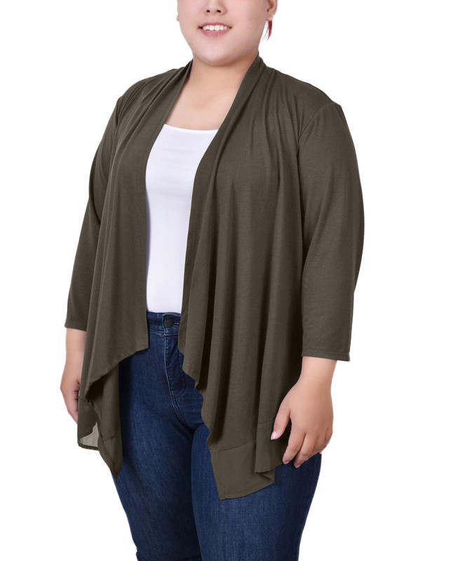 NY Collection Plus 3/4 Sleeve Sharkbite Hem Cardigan