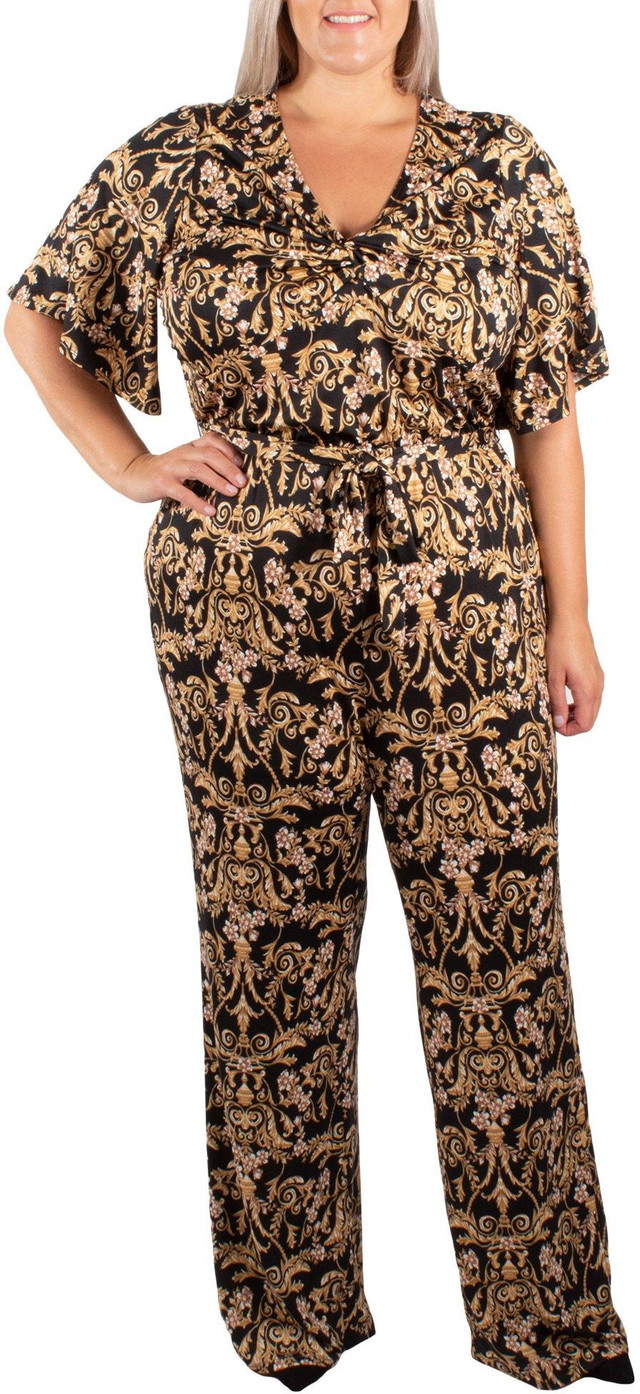 NY Collection Plus Printed Angel Sleeve Twist Front Jumpsuit