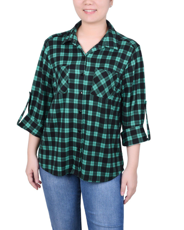 NY Collection Womens Long Dolman 3/4 Sleeve Button Front Top