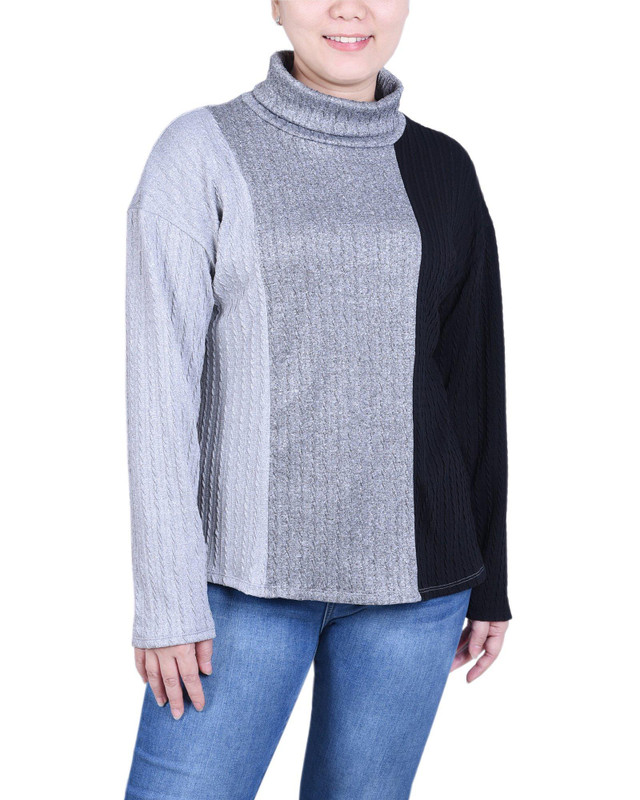 Be ever so comfortable yet stylish this season in this Petite tri-colored turtleneck top from NY Collection