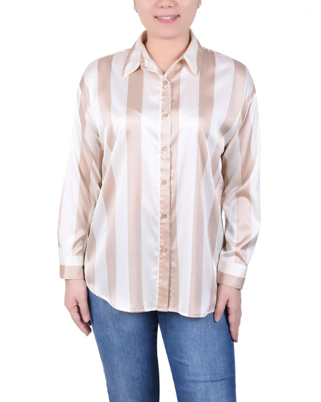 NY Collection Petite Long Sleeve Striped Satin Blouse