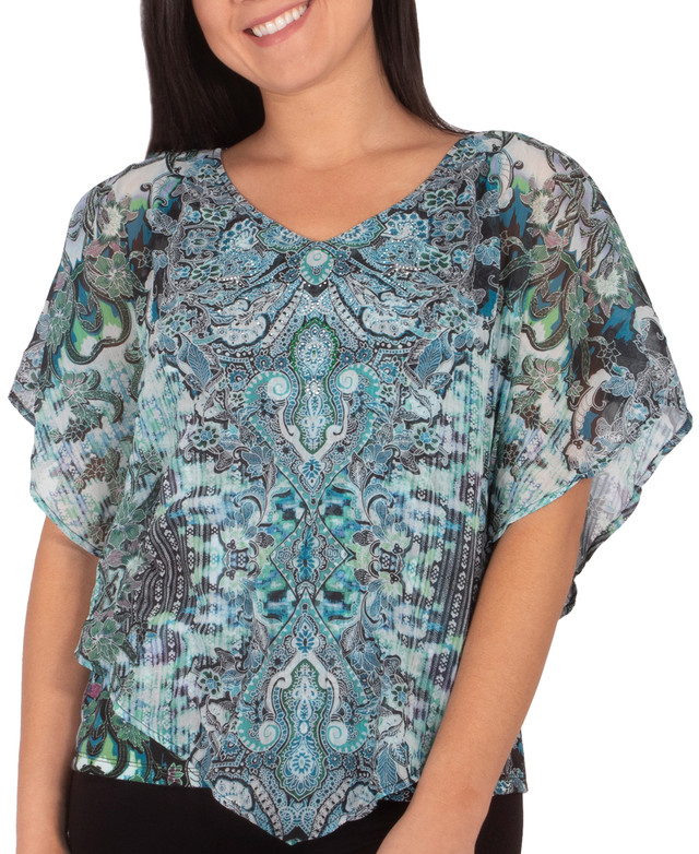 NY Collection Plus Mx Combo Burnout Poncho Top