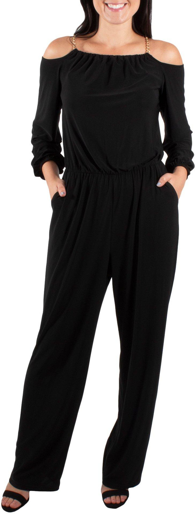 NY Collection Womens Off the Shoulder Chain Neck Jumpsuit