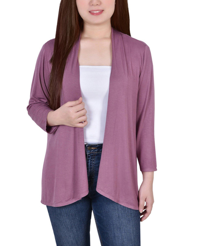 NY Collection Womens Petite 3/4 Sleeve Solid Cardigan