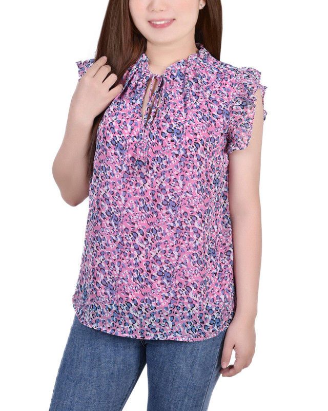 NY Collection Womens Ruffled Sleeve Blouse With Tie Closure