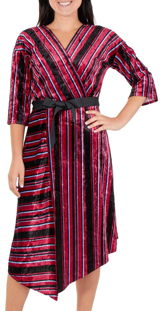 NY Collection Womens Stripe Velvet Asymmetrical Dress