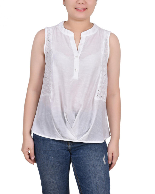 NY Collections Petite Sleeveless Blouse With Eyelet Insets