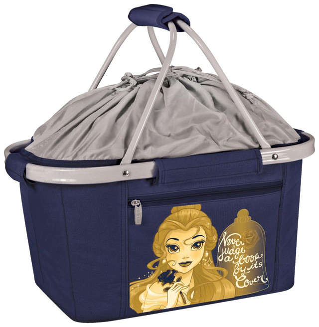 The Metro Basket is a lightweight fully-collapsible, insulated basket. It's made of 600D polyester canvas and features Beauty & the Beast design, water-resistant interior, expandable drawstring top and sturdy aluminum frame from which the canvas detaches. 26 can capacity. Measures: 19'' x 11'' x 10''.