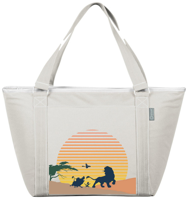 The Topanga cooler tote is made of durable polyester with Lion King decoration and features a separate exterior pocket. Interior features heat-sealed PVC for no leaks and it is large enough to carry 24 soda cans. Measures: 21'' x 8.7'' x 13''.