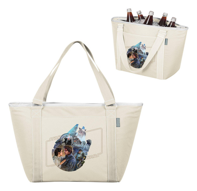 The Topanga cooler tote is made of durable polyester with Disney Star Wars Celebration decoration and features a separate exterior pocket. Interior features heat-sealed PVC for no leaks and it is large enough to carry 24 soda cans. Measures: 21'' x 8.7'' x 13''.