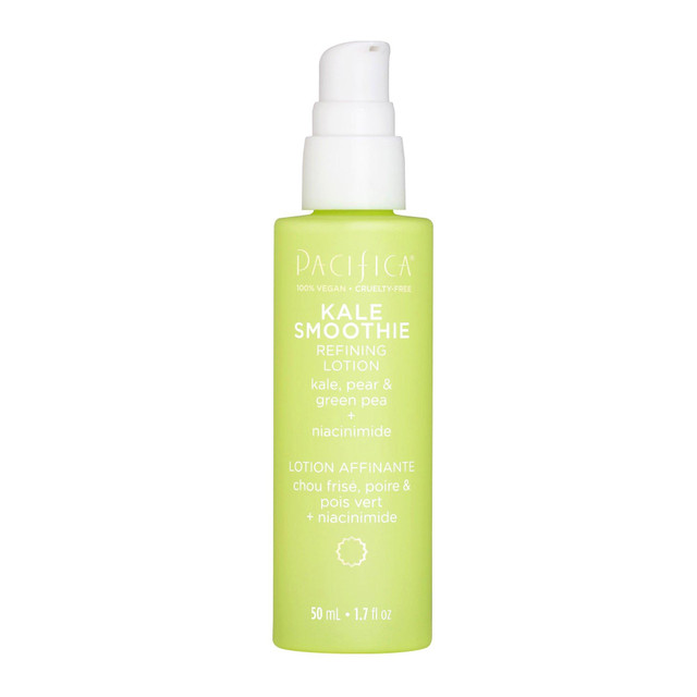 This Kale Smoothie Refining Lotion is a gel-like light fluid, packed with copper, niacinamide and a supergreen line-up of nutrient rich kale, aloe and green pea plus vitamins C and E. Designed to fight redness, minimize the appearance of large pores and improve skin texture and tone. Contains 1.7 Fl. Oz.