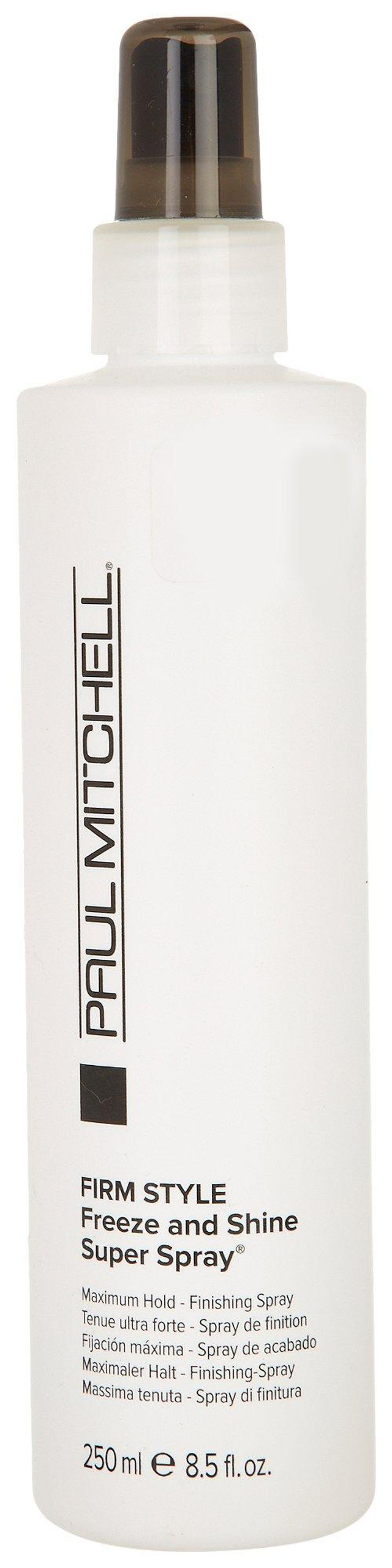 The Paul Mitchell Firm Style Freeze and Shine Super Spray is ideal for thick or coarse hair types. It offers maximum hold and shine. Expiration 18 months from first use. Never tested on animals. 8.5 fl. oz.