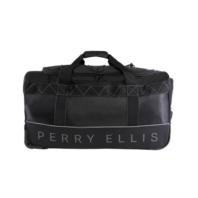 Travel in style with the Perry Ellis 24 in. rolling duffel bag. Featuring a spacious compartment, recessed wheels and a separate shoe compartment; Perfect for those short weekend trips. Measures 24 in. x 12 in. x 12 in.