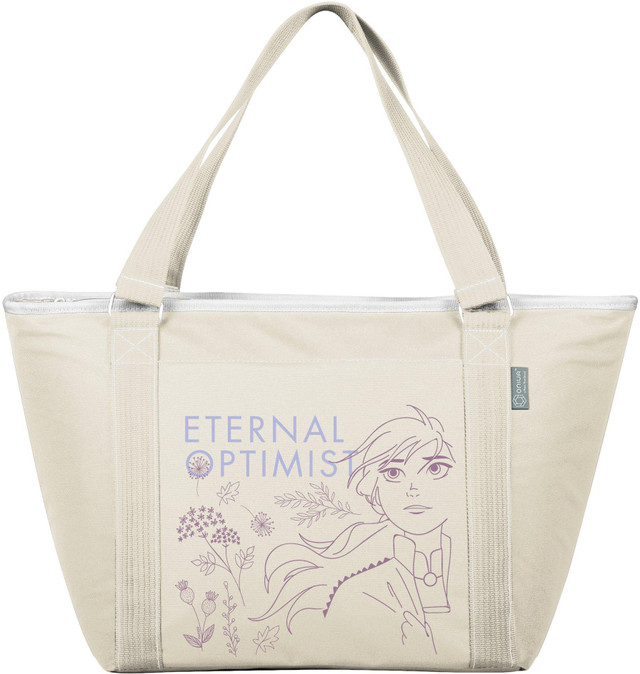 The Topanga cooler tote is made of durable polyester with Frozen 2 character: Anna decoration and features a separate exterior pocket. Interior features heat-sealed PVC for no leaks and it is large enough to carry 24 soda cans. Measures: 21'' x 8.7'' x 13''.