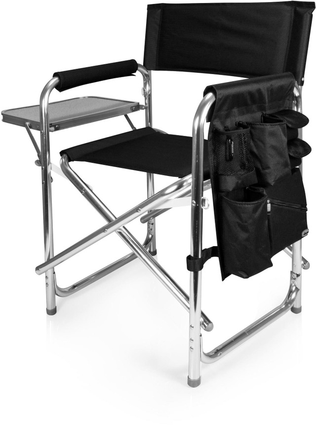 The Sports Chair by Picnic Time is lightweight & foldable with a sturdy aluminum frame and adjustable shoulder strap. Chair features extra-wide seat (19.5'') and is made of durable 600D polyester. Side table folds out and holds up to 10 lbs. Maximum weight capacity: 300 lbs. Perfect for tailgating at your favorate sporting event: NCAA, NFL, MLB.