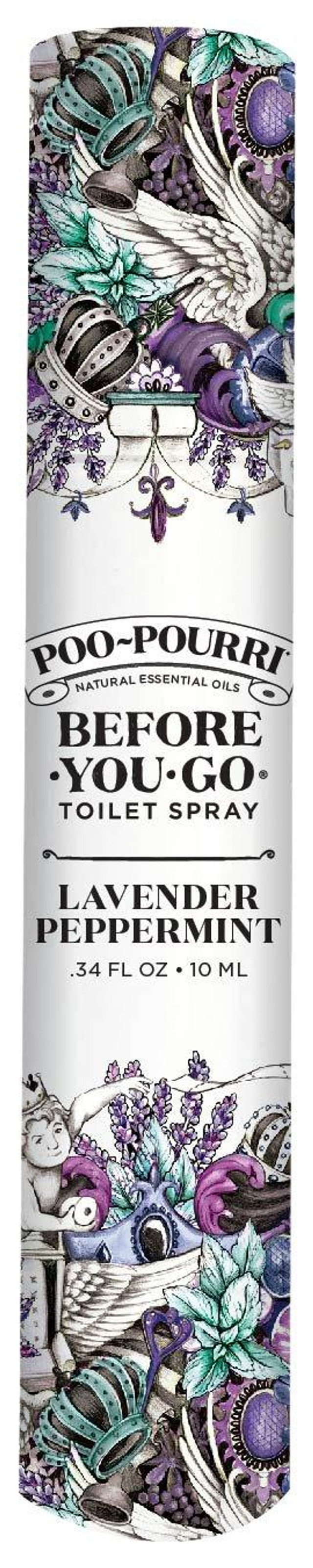 Poo-Pourri Before You Go toilet spray features a lavender peppermint scent. Spritz 3-5 sprays into the toilet bowl on the water surface. All you will smell is a refreshing bouquet of natural essential oils. Travel size contains 0.34 fl. oz.