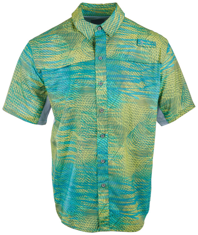 Show off your love for fishing on and off the boat in this stylish Mariner short-sleeve shirt from Reel Legends! This shirt features a vibrant abstract print-design on lightweight woven fabric, a point collar, full button closure, a fully vented back and underarm panel to keep you cool, two front utility chest pockets, a rod holder, UPF 50 sun protection, and moisture-wicking and quick-dry technology. Fabrication 100% polyester.