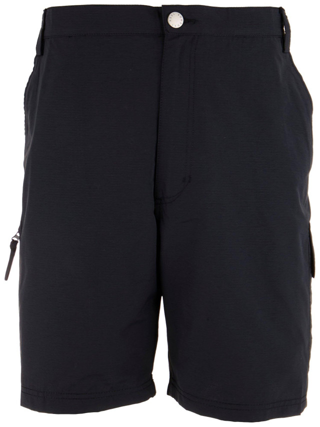Reel Legends apparel is perfect for land or sea adventure! These Tarpon shorts feature a classic solid color design, two front mesh pockets, back flap pockets with hook and loop closure, one cargo pocket with hook and loop closure and exterior mesh slip pocket, one cargo pocket with zip closure and exterior slip pocket, moisture wicking technology, quick drying properties, UPF 50 sun protection, and a back elastic waistband. Inseam is 8 inches. Fabrication 65% cotton 35% nylon.