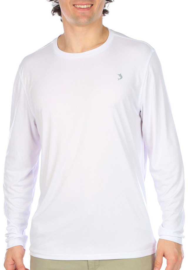 Reel Legends offers performance designs to support the active lifestyle. This Reel-Tec long sleeve shirt features a solid color design on smooth stretch fabric, a round neckline, moisture-wicking, sweat-activated, and quick-dry technologies, UPF 50 sun protection, and classic fit. Recommended as an effective UV protectant only for covered areas. Fabrication 100% recycled polyester.