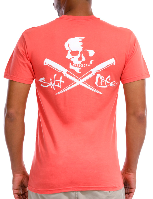 This short sleeve tee features a solid color design on lightweight breathable 100% cotton jersey fabric, screen printed graphic on the back, screen print logo on the chest, one chest pocket, a crew neckline, and a classic fit. Top length measures approximately 32 in. Fabrication 100% cotton.