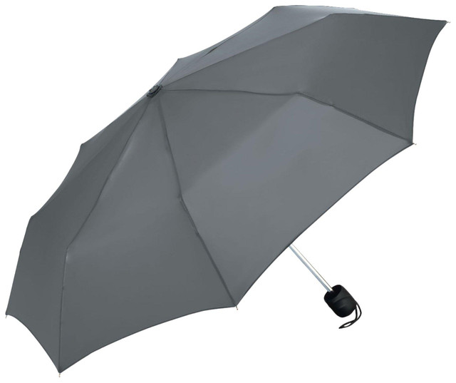 This compact umbrella features a solid color design on a polyester and steel fabrication, a manual opening function, 42 inch arc, rubber coated handle, and woven cord wrist strap. Closed length measures 9.5 inches. Bonus matching fabric case. Lifetime warranty. Fabrication includes steel shaft and ribs for optimal strength in harsh weather.