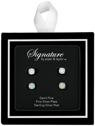 Elevate your jewelry collection with the Signature 2 Pk Fine Silver Plated Stud Earrings! This elegant set features two pairs of classic stud earrings, each crafted with high-quality fine silver plating for a timeless shine. One pair showcases a sleek minimalist design, while the other features a subtle textured finish, giving you versatile options to suit any occasion.