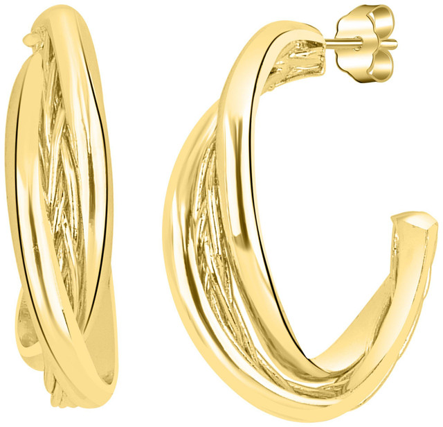Add a touch of sophistication to your jewelry collection with our Signature 0.75 in. 3 Row Twist Gold Plated Hoop Earrings. These exquisite hoops feature a unique three-row twist design that creates depth and movement, making them a striking accessory for any occasion. Measuring 0.75 inches in diameter, they offer a perfect blend of subtle elegance and eye-catching style. The luxurious gold plating ensures a radiant finish that complements any outfit, from casual to formal.