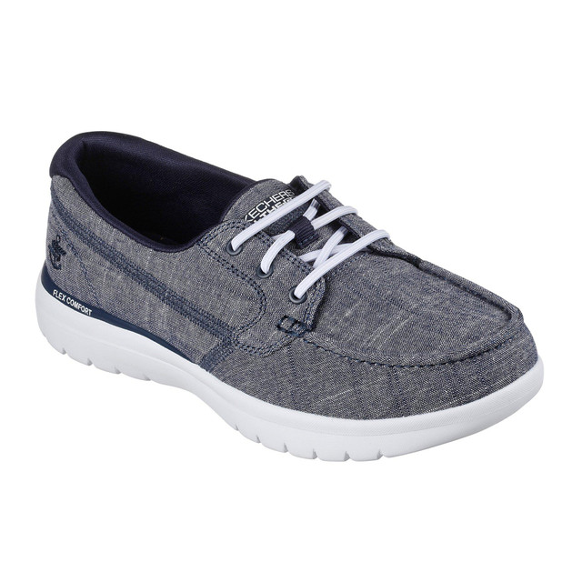 Iconic design and premium materials fuse with innovative Skechers Performance technology to achieve the ultimate in comfort and style. Skechers On-the-GO Flex - Ashore has a colorful heathered finish soft linen fabric upper in a casual boat shoe design with a Skechers Air-Cooled Goga Mat insole and lightweight ULTRA GO cushioning.