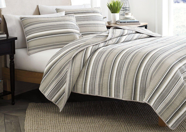 This quilt set by Stone Cottage features an easy going stripe that is rich with color and warmth. The Fresno Neutral quilt set includes 1 quilt 88'' x 68'' and 1 sham 20'' x 26''.
