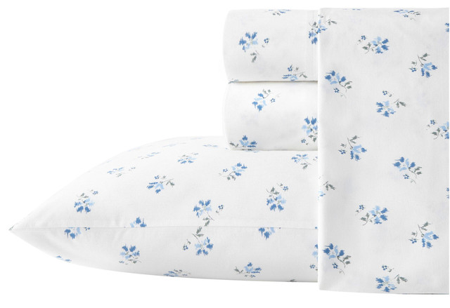 Add gorgeous rustic charm to your bedroom décor with a new printed percale cotton sheet set from Stone Cottage. This sheet set features a charming sketched floral print that will coordinate beautifully with any bedding ensemble. Includes one flat sheet, one fitted sheet, and two pillowcases (one for twin size).