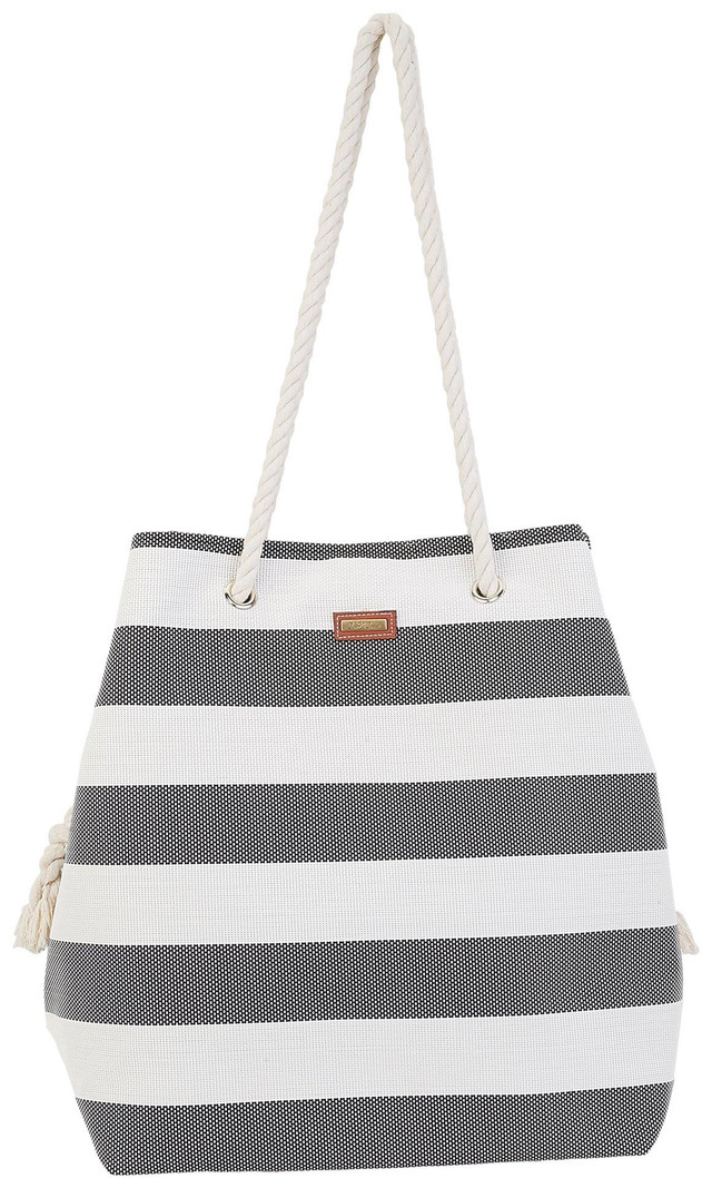 Sun N' Sand beach bag tote provides a stripe pattern, double handles, magnetic snap closure, interior zipper pocket, and an interior slip pocket. This tote measures 21'' L x 8'' W x 15.5'' H. Strap drop is 12''.