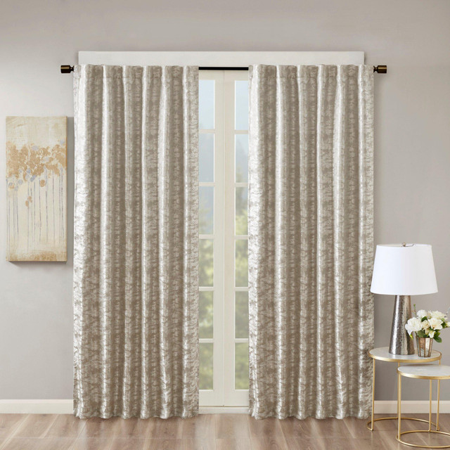 SunSmart Cassius Jacquard Total Blackout Panel is the perfect update to your windows, with its stunning beauty and functional style. This elegant window panel flaunts a marble jacquard design in rich gold hue creating a luxurious sheen, for a lavish look. A high-quality woven lining blocks out all sunlight, provides a maximum protective barrier against noise intrusion, and offers a maximum level of privacy and energy savings. These blackout curtains are also OEKO-TEX certified.