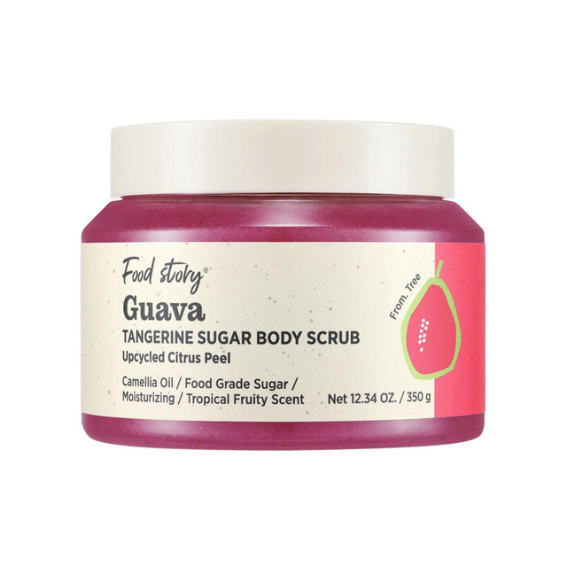Treat your skin to The Food Story's Guava Tangerine Sugar Body Scrub in a generous 12.34 oz. jar. This invigorating scrub blends the nourishing properties of guava and tangerine with exfoliating sugar crystals to gently polish away dead skin cells. The creamy formula leaves your skin feeling ultra-soft and rejuvenated, while a subtle, tropical fragrance provides a refreshing, sensory escape. Ideal for smooth, radiant skin with every use!