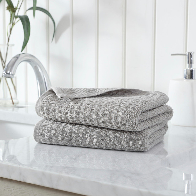 Wrap yourself in tropical comfort with the Tommy Bahama 2 piece hand towel set. Available in a vibrant color palette, this towel set will coordinate with any bathroom décor. Constructed in high quality cotton, this perfect towel set will seamlessly bring a pop of color and style to your home. These towels have a substantial 465 gsm, durable and quick drying zero twist construction. Machine washable for easy care. 2 Piece Set includes 2 Hand Towels: 28L x 16W each.