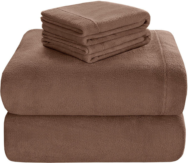 Micro plush fabric offers the ultimate in sleeping comfort with a velvety soft finish to warm you up. The light weight fleece is a soft and fluffy way to add warmth, and is machine washable. Set includes 1 flat sheet, 1 fitted sheet and 2 pillowcases (1 pillowcase in twin set).