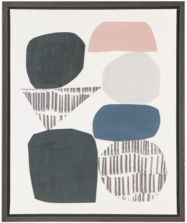 The Urban Habitat Grey Rock Garden Gel Coat Framed Canvas two-piece set introduces a chic, modern look to your décor. This canvas wall art set features abstract geometric shapes in soft and dark hues that boldly contrast with the white background. The gel coating creates a glossy sheen that protects the colors from fading and the frame detailing gives this two-piece set a finished look. Each piece measures 19.6''L x 23.6''W x 1.61''H.