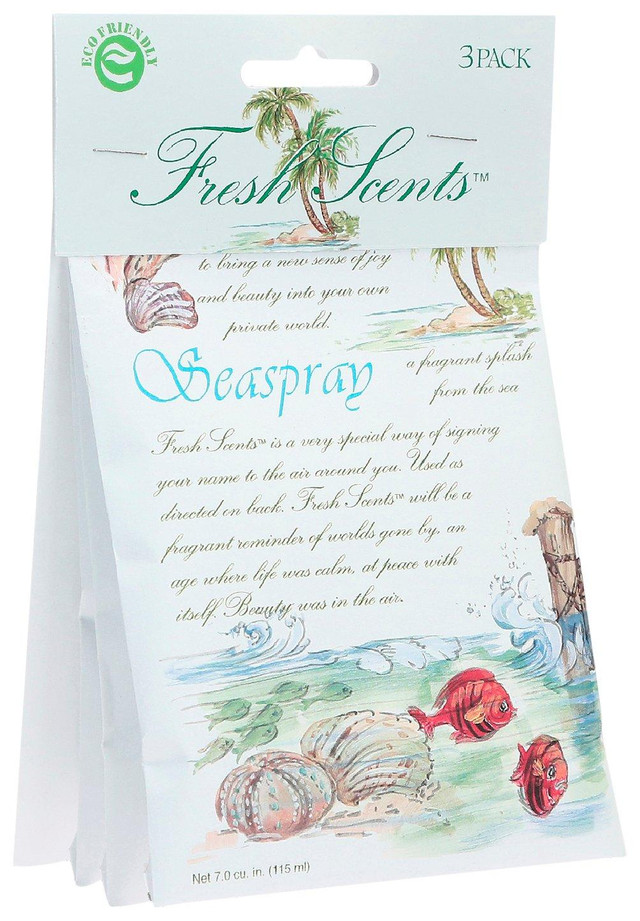 The WillowBrook Seaspray Sachet 3-pk. features long lasting fragrances of ozone, jasmine, sandalwood, and musk from concentrated essential oil. Can be used in a variety of places and is eco friendly.
