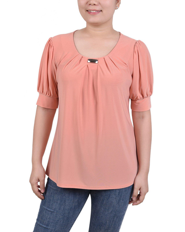 Womens Short Sleeve Balloon Sleeve Top With Hardware