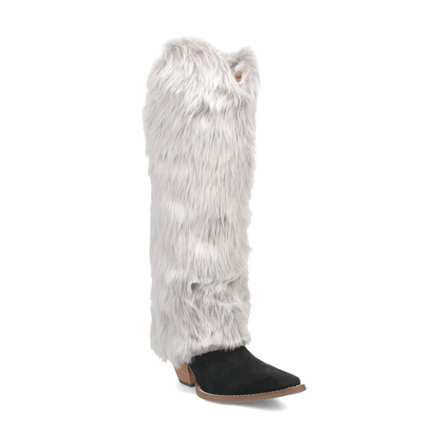 Unleash your Bad and Boujee style with the Snuggles leather boot. This 18-inch showstopper will have you cozy and stylish this season. The suede leather vamp is beautifully accented with a fluffy faux fur shaft, creating a luxurious and eye-catching contrast. With a 2 1/2-inch heel and a sleek snip toe, these boots are not just a statement piece; they're a fashion essential for those who dare to stand out.