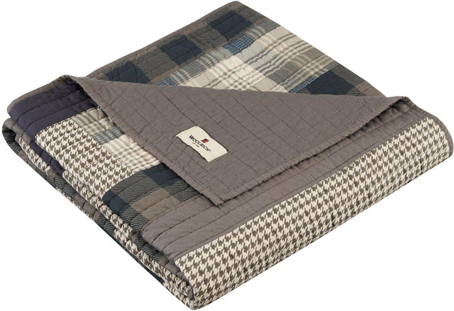 The Woolrich Winter Hills quilted throw features a a mix and match of plaids and solids. Made from 100% cotton this lightweight throw is soft to the touch and can be used year round. Measures 50'' x 70''.