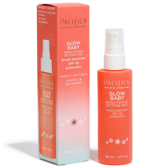 This brightening setting mist is infused with Vitamin C and sea minerals for invisible, lightweight application. Includes SPF 45 for protection with hydration and a glowy finish. 1.7 FL. OZ.
