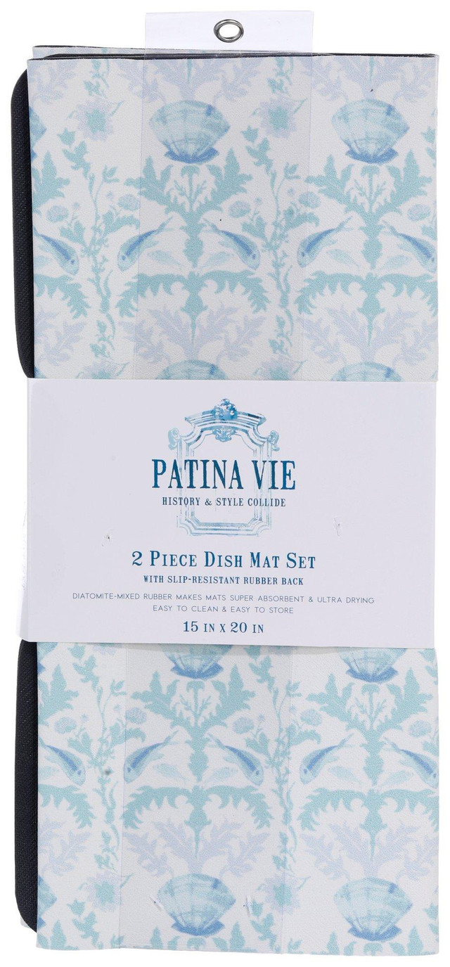 Keep your kitchen dry and tidy with this 2-pack of Ocean Floor Dish Mats. Measuring 15x20 inches, each mat features a slip-resistant rubber back, super absorbent material, and ultra-drying performance. Easy to clean and perfect for everyday use.