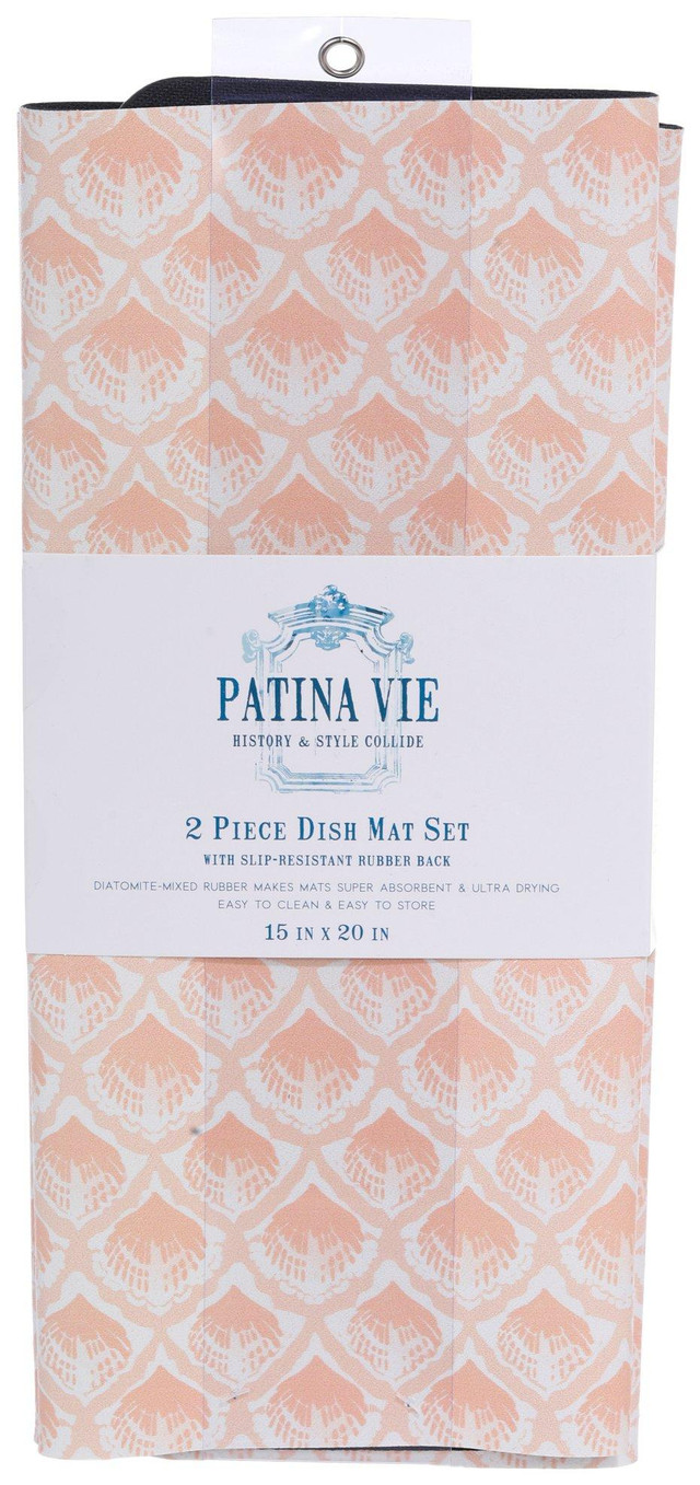 Keep your kitchen dry and tidy with this 2-pack of Scallop Print Dish Mats. Measuring 15x20 inches, each mat features a slip-resistant rubber back, super absorbent material, and ultra-drying performance. Easy to clean and perfect for everyday use.