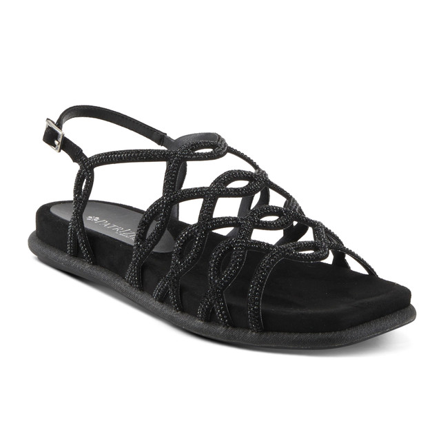 Our exquisite Glamgloss interwoven rhinestone flat sandals blend craftsmanship, dazzling beauty, and unmatched comfort, ensuring you exude confidence and allure for every occasion. The microsuede and jewel upper, faux leather lining, and microsuede insole provide a luxurious feel, while the TPR outsole ensures durability. They feature buckle closure, a stunning interwoven strap design with rhinestone detail and a glittery wrap outsole for a touch of glamour. Fits true to size.