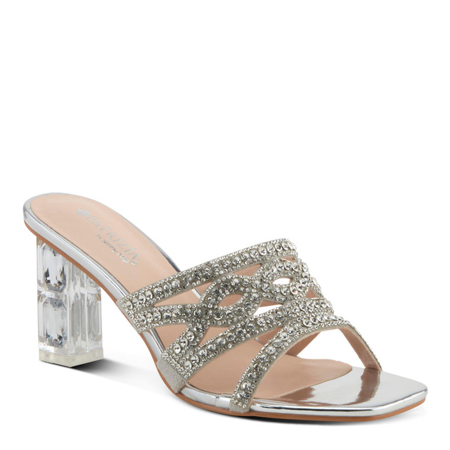 Step into sophistication with the Knowles dress slide sandals, featuring a clear heel with diamond cuts that catch the light with every step. These stunning sandals, with their intricate crystal detailing, are perfect for formal events, evening parties, or any special occasion. Crafted with a faux leather upper, lining, and insole, and a rubber outsole, they offer a comfortable fit and a flattering silhouette. Crafted with a faux leather upper, lining, and insole, and a rubber outsole.