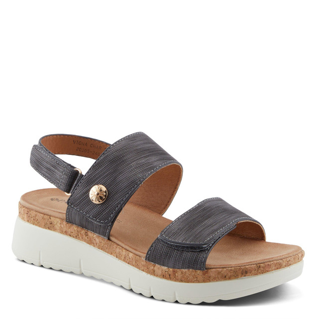 Elevate your style with our Viona wedge sandals. The faux leather upper features two chic, metallic hook-and-loop adjustable straps for a customizable fit. The back strap with hook-and-loop and D-Ring closure adds extra adjustability and security. The wedge combines natural cork charm with white sophistication, providing stability and elevated style. Designed for all-day comfort, these sandals fit true to size, ensuring you stay stylish and comfortable throughout the day.