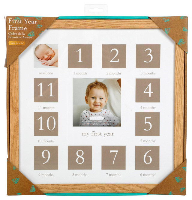 Celebrate every milestone with the 14x14 Kate & Milo First Year Picture Frame featuring twelve cutouts to display a photo from each month of baby's first year. A meaningful keepsake that captures growth and memories in a timeless display. Perfect for nursery decor or gifting. Fabrication is wood and glass. Measures approximately 14 in x 14 in.