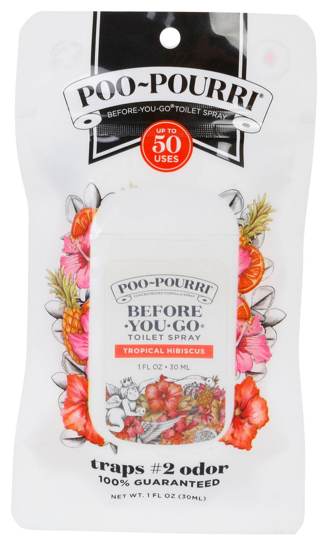 The Tropical Hibiscus Pocket Sprayer is a perfectly pocket-sized Poo~Pourri bottle thats great for on the go! Made with essential oils and leaves the toilet smelling better than you found it.