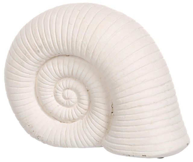 Bring a touch of the coast indoors with this 8 inch ceramic nautilus shell accent. Featuring a realistic design and natural finish, it adds elegance and tranquility to any space. Perfect for shelves, mantels, or coffee tables, this compact décor piece blends effortlessly with coastal decor or beach-inspired interiors. Fabrication is 100% ceramic. Measures approximately 8 in x 7 in.