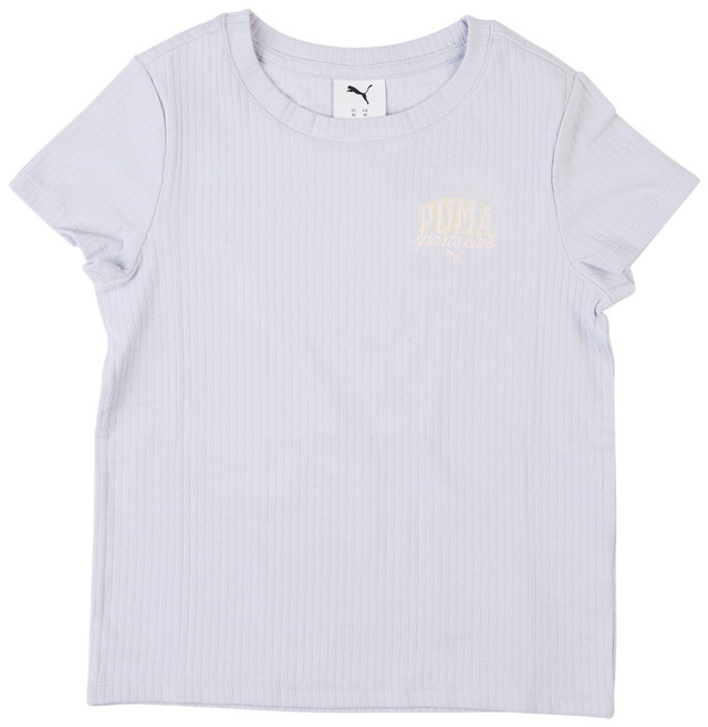 This stylish girls top is designed for all day comfort with a soft ribbed knit fabric that moves with her. The sporty Puma logo embroidered on the chest adds a bold touch, making it perfect for active days or casual wear. Whether she is heading to practice or hanging out with friends, this kid approved T-shirt delivers effortless style and a comfortable fit she will love.